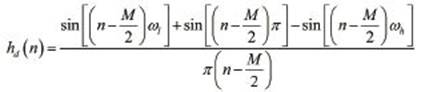 以上设计的是FIR低通数字滤波器,若设计高通、带通、带阻数字滤波器,只需改变(2.1.3)式积分的上、下限。