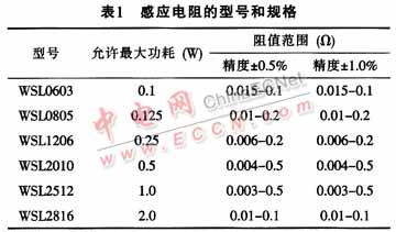 检测电阻RSENSE的取值应根据后端负载的最大工作电流来选取。假定过流电流ILMT1=11A,那么,在选择检测电阻时,就必须选择允许通过电流范围大于11A的检测电阻,并确保检测电阻上的自身功耗不超过其额定功率。本设计选择的检测电阻的内阻为0.003Ω,自身允许功耗为l W。表1提供了部分检测电阻的规格和指标。