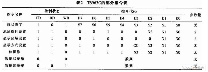 本系统的软件设计可基于VHDL语言编写。软件设计的关键在控制器时序的基础上完成液晶显示器与FPGA之间数据和指令的读写和状态的检测。对液晶显示器的显示控制实际上就是FPGA与T6963C控制器的数据交换。T6963C的部分指令如表2所列。