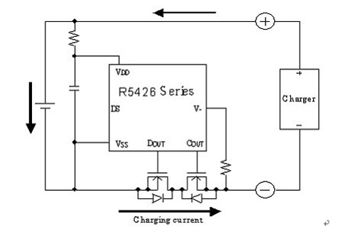 电池包与充电器连接时瞬间会有高压产生,因此保护IC因具备有"耐高压的要求(Ricoh的保护IC即可承受到28V)