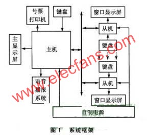 基于单元化思想设计,系统硬件由主机控制器、从机控制器、人机交互界面、键盘输入系统、嵌入式打印机、语音播放系统、自制电源模块组成。