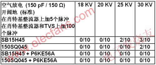 表3:肖特基整流器和TVS的ESD测试结果