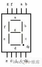 八段数码显示管如图1.1 所示,八段数码管每一段为一发光二极管,共有a~g 以及小数点dp 八个发光二极管。将八段数码管中的每个二极管的阴极并联在一起,组成公共阴极端。这样把共阴极管脚接地,此时哪个管脚输入高电平,对应发光二极管就被点亮。