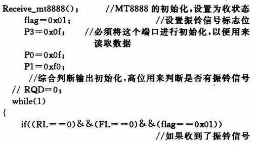 该装置一般工作在接收的状态,蓝牙接口模块处在发送的状态,当远端的电台呼叫用户时,用户就可以通过电台接口和蓝牙接口接听到远端用户的话音,同时,该装置可以通过DTMF模块来判断来自电台的呼叫请求(如摘机)信号,单片机控制电话接口模块模拟摘机,将二线信号给CMX683处理,判断如果是话路空闲,那么启动该发送端给对端用户一个空闲指示音,该用户可以拨打对方的电话号码。在发送端,当用户通过蓝牙装置发送时,该装置接收到用户蓝牙的无线信号后,通过单片机来控制PTT按键,从而接通整个装置的发送通路,将话音发送出去。