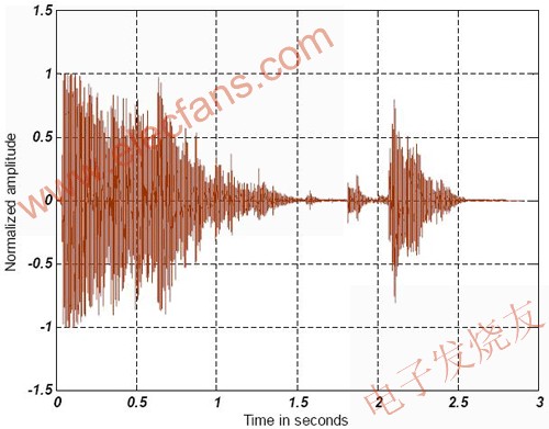 稳健的 GBD 算法应该能够很容易地将真正的玻璃破碎声与其它声音区别开来。所有 GBD 算法都会捕获声音,并对其时间和频率构成进行分析,然后做出决策。玻璃破损声会因玻璃类型、厚度、声学环境、距离,以及撞击玻璃所用器具的不同而有所变化。虽然所有 GBD 算法的本质很类似,但在具体情况下会略有差别。不过,很难让一种算法适用于所有情况。而对算法的微调通常要在家庭或企业的最后安装阶段中进行。有效的玻璃破损信号可在时域或频域内加以分析。图 1 和图 2 分别显示了时域和频域内典型的玻璃破损信号。玻璃破损声的音频频谱正好介于 20Hz 至 20 kHz 之间。时域波形与实际听到的声音相关,而频域波形则给出了完整的信号频谱。上述两种图形为设计高效的玻璃破损检测算法提供了重要信息。时域图显示波形密集,且在短时间间隔内存在大量活动,这不仅说明信号包含了大量高频分量,同时也意味着波形的跨零和峰值数较多。尽管这些信息很有用,但这些特点看起来却酷似白噪声。设计人员接下来所面临的挑战就是如何对其加以区分。
