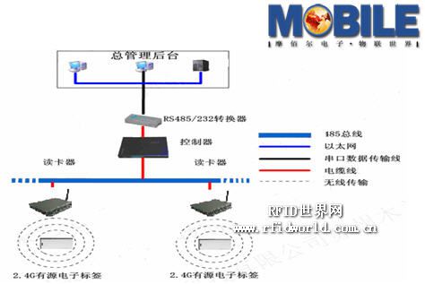 首先在大楼内通道及需监控的范围内安放有源读卡器,具体数量和位置需要根据现场实际工况以及要实现的功能需求而定,并且将它们通过网络布线和监控中心的计算机联网,同时为每名机关、专业所干部配备有源射频识别卡。