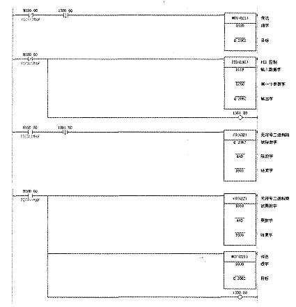 根据工艺特点,在PLC编程中采用分段编程的形式,这样使程序的可读性强,易于理解。以焚烧炉控制程序为例,控制程序包括模拟量处理、时间参数设定、回路控制、火咀点火程序、报警程序、地址转换程序等,控制思路清晰,程序可读性强。操作人员只需在上位机上发出简单的指令,控制程序即可按照工艺要求步骤对现场设备进行控制。PID指令的使用和回路控制是PLC应用过程中的难点,下面以单回路控制为例,说明PID指令手动/自动无扰动切换的编程方法。无扰动切换程序说明:HlOO.OO是手动/自动切换位,当H100.00=l时,手动控制;Hl 00.00-0时,自动控制。微分指令的下降沿表示切换的瞬间。