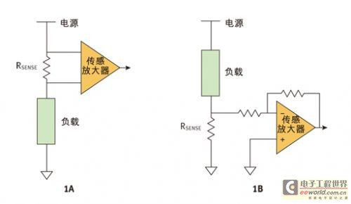 将检测电阻放在负载和电路地之间,那么该电阻上形成的压降可以用简单的运放进行放大。