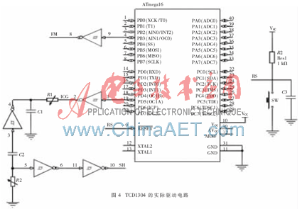 基于ATmega16的TCD1304的驱动电路如图4所示。