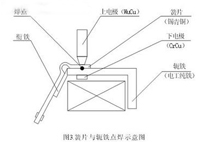 固有电阻大的工件选用固有电阻小的材料做电极,固有电阻小的工件,选用固有电阻大的材料做电极。如图所示,JQX-15F 的簧片与轭铁的点焊,簧片一侧采用WuCu电极,而轭铁一侧采用CrCu电极,这样,热量就会集中在工件结合面处,焊接效果较好。