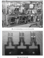 通讯继电器中接点与簧片的尺寸都非常小,人工点焊非常困难,且效率低小,品质难以保证。在国外,如西门子、松下、欧姆龙、神明等均采用自动点焊,接点通常用丝材,切断后点焊在簧片带料上。此点焊机较复杂,难点主要在送丝机构上。现在,国内已仿制出此设备,运行效果较好。此种点焊机对焊接电源的品质要求很高,基本上都是采用米亚基公司的逆变焊接电源IP-217A/IT-510B或晶体管式点焊电源 MDA-4000B。图5为国内制造的接点自动点焊机的实物,图6 为使用该设备的接点焊接实物。