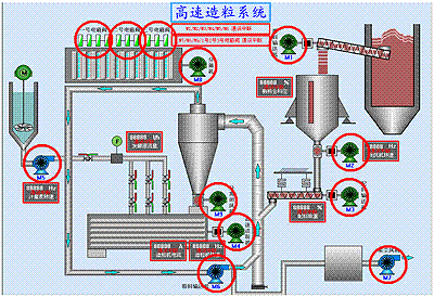 在某高速造粒监控系统中使用了2台AI-301ME5I5I5I5I5I5S来采集显示12个开关量输入点,主要是各种风机和电磁阀的状态。