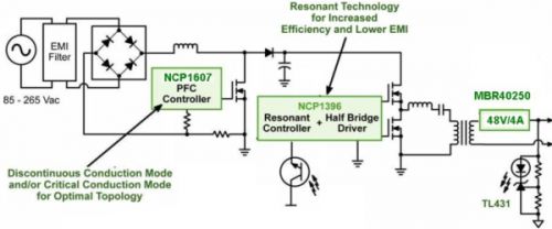 2) 基于NCP1607和NCP1397的超高能效大功率LED街灯电源方案