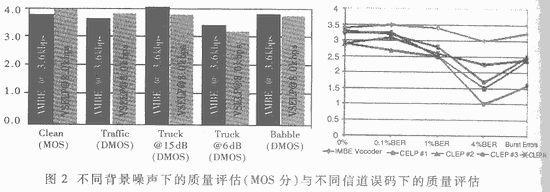 从图2可以看出,AMBE-1000算法的抗背景噪声能力明显比较性预测CELP等其它算法的高。