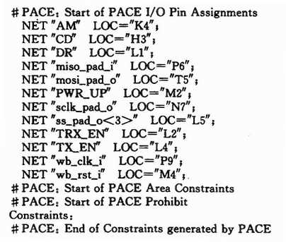 下载是将配置文件下载到具体的FPGA芯片中。本文系统中采用的是JTAG下载方式,下载工具使用Xilinx ISE的集成工具iMPACT。在下载之前进行了管脚绑定其目的就在于能够将设计的输入/输出端口约束在FPGA芯片的合适的引脚上,以方便对其进行分析和调试并与外界I/O进行相连。下面即为本设计中相应的管脚约束文件中的相关内容。