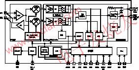 IA4420/21 具备高度集成的PLL,方便了RF设计;高速的工作速率可以迅速跳频,避开多径衰退和干扰,找到稳定的无线电链路;PLL的高分辨率允许在任何上述频段使用多个频道;高达256kbps字节的封闭回路调节保证了FSK调制的高度稳定性和正确性。此外,微型调控器时钟、定时器、低电量监测器、输出功率电平以及天线调节功能都可以通过串行接口编程。IA4420/21还具备自动频率控制,可确保收发器自动调整到输入信号的频率。有了自动频率控制,制造商可以选择使用低价晶体而依然能保证满意的频率调制效果。内部原理如图1所示。