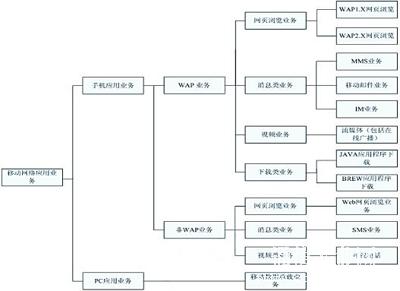 业务性能分析与优化:3G业务性能优化区别于传统优化,需要从业务的感知出发,对全网络设备链的多个接口数据进行采集和分析,分析内容包括:业务信令完整性分析、性能统计分析、多接口关联分析等。这里首先根据应用业务的功能和技术特点进行分类,如图2所示。
