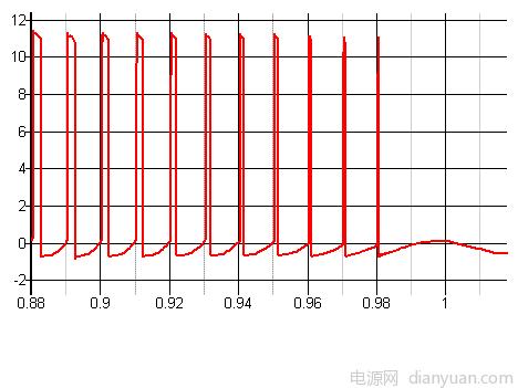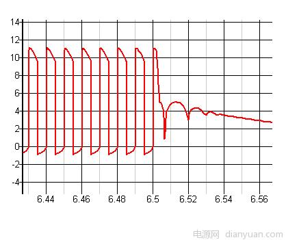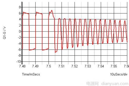 可见,在驱动突然关掉之后,C1上的能量,会引起驱动变的电感,C1以及mos的结电容之间的谐振。如果这个谐振电压足够高的话,就会触发MOS,对可靠性带来危害。