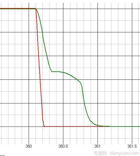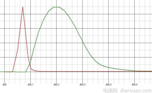 红色波形为R3=1欧姆,绿色为R3=100欧姆。可以看到,当R3比较大时,驱动就有点力不从心了,特别在处理米勒效应的时候,驱动电压上升很缓慢。