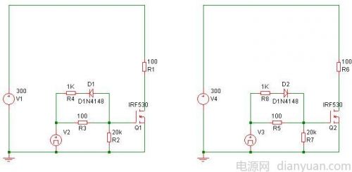 红色的是R3=1欧姆,绿色的是R3=100欧姆。可见R3越大,MOS的导通速度越慢