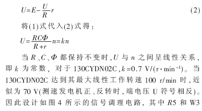 直流测速发电机是一种模拟测速装置,可将轴转速信号变换为直流电压输出。由电磁理论可以推导直流测速发电机的感应电动势E与转速n的关系为: