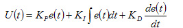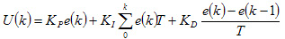 式中T为采样周期,KP是比例系数,KI=KP/TI是积分比例系数,KD=KPTD是微分比例系数。