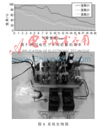 图5所示为在相同条件下,耦合磁性的电感进行改变后的耦合输出效率。