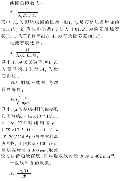 其中:D为电压导通的占空比,实现计算时最大值可取 0.5。代入相关参数可知至少需要4股线。