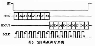 。地址将在SCLK上升沿锁入SDIN。然后,数据便可在SCLK的下降沿从SDOUT输出。图5所示是从器件读数据的时序。
