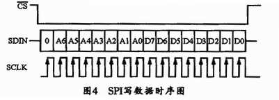 变低之后,器件将等待从SD-IN读入第一个字节,以确定正在执行的数据传输类型。图4所示为写数据时序。