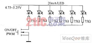在白光LED应用中最明显的问题是产品的匹配性差,按照白光LED的典型规格,电流为20mA时正向电压的最小值为3.0V,典型值为3.5V,最大值为4.0V。显然,稳压源不是合理的解决方案。利用相同的电流驱动每只LED可以获得均匀亮度,但成本很高。大多数应用只是简单地利用固定偏置电压和限流电阻来获得近似匹配的白光LED亮度,如图1所示。