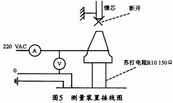 接下来关闭发射机,并断开假负载与馈芯的连接,再次检测加热状态后的R10的电阻值,当苏打水达得70℃平均温度时,按图5所示接线方式测出R10的阻值应为150Ω左右。