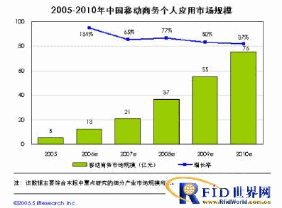 近年来,全球移动支付市场呈现高速增长的发展态势。全球移动支付收入自2004年起实现成倍增长,从2002年的55亿美元,增长到2005年的近200亿美元,平均年增长率超过100%。全球已有30多个国家和地区开展了移动支付业务,而东亚地区被视作全球移动支付增长最快的区域,韩国、日本是当前全球领先的移动支付发展国家。目前在韩国,每月有超过30万人在购买新手机时会选择具备能储存银行交易资料并进行交易信息加密功能的手机;而日本则在移动支付的实现方式上进行了大胆而成功的尝试,Felica近距离非接触通信技术在日本逐渐盛行,在短短的大半年时间里,新增用户数超过300万,安装非接触式芯片读卡器的零售商累计达到2万多家。从交易规模来看,根据研究咨询公司BWCS的预测,预计到2010年,全球仅移动现场支付(不包括虚拟支付)的市场规模将达到3800亿美元。我国移动电子商务近些年来也得到了极大的发展,具体数据由如下图所示: