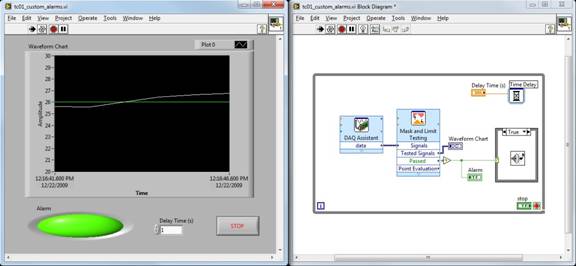 NI LabVIEW 可以用来创建自定义报警条件,只需简单的拖放即可