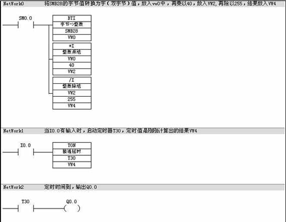 //当I0.0有输入时,启动定时器T30,定时值是刚刚计算出的结果VW4