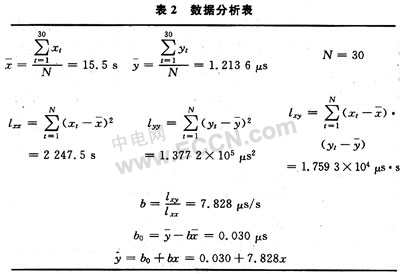 式中:ε1,ε2,…,εN分别表示其他随机因素对变量y1,y2,…,yN影响的总和,一般假设它们是一组相互独立,并服从同一正态分布N(0,δ)的随机变量。变量x在实验中为自然数,表示具体的秒脉冲数值。这样,变量y表示实际所测得的晶振与标准频率的计数差值,它是服从N(β+βx,δ)的随机变量。