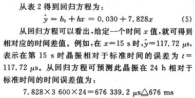 式中:b0,b是回归方程的回归系数,分别表示晶振相对于标准频率的初始误差和累积误差。应用最小二乘法可求得回归系数b,b0为:
