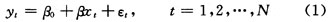 从散点图可以看出,测量计数值和测量时间大致呈线性关系。据此假设这两个变量之间的内在关系是一条直线,这些点与直线的偏离是由于测量过程中其他一些随机因素的影响而引起的,这样可以假设这组测量数据有如下结构形式: