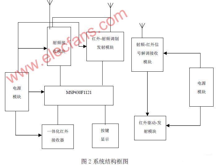 2 将红外信号调制在射频信号上,可解决红外信号传播的方向性缺点以及不能穿墙的问题,实现远距离的无线控制