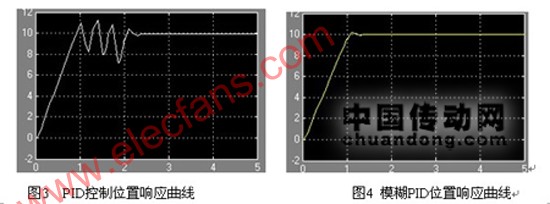 在给定位置输入同样为10rad的情况下,图4最终也达到了要求,但是中间出了较大的抖动,而采用了模糊PID控制后,从图5可以看出系统响应更加迅速,并且超调量很小,过程的稳定性也大大的提高。说明采用模糊PID控制达到了控制系统的基本要求,比起单纯的PID控制确实具有优越性。