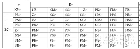 表1 KP模糊规则