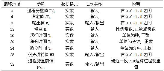 表4.1 PID回路参数表