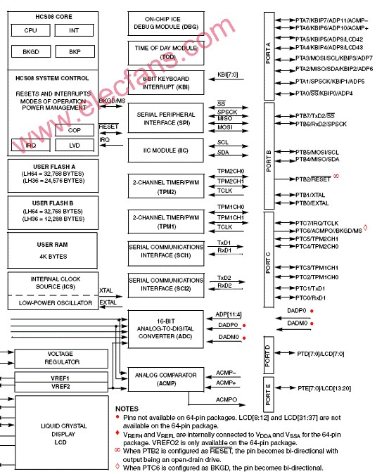 图1.MC9S08LH64系列方框图