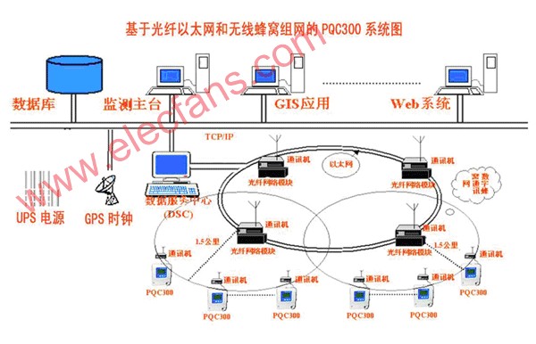 为提高目前我国电网自动化的管理水平,并能方便、高效及时掌握电网及设备的运行状况,以及针对当前我国配电网设备分布面积广、布点分散等很多实际特点,要靠传统的方式和手段建立一个时效性强,可靠性高、投资少的通信信道组成网络困难非常大。为此我公司专门研制的PQC300配电负荷测控终端与DUT100多功能GPRS通信终端或CUT2000/SUT2000高速数传电台组网,配以功能齐全的PQC300配电负荷监测主控软件、DSC通讯前置机软件等构成PQC300配电负荷监测系统。该系统基于工业网络和计算机网络,并实现双网无缝连接。为解决公变、专变、农变现场数据采集传输服务提供了最方便、最可靠、最经济的通讯传输手段,解决了长期以来数据采集网络系统难度大、成本高、可靠性差、构建复杂的瓶颈问题。