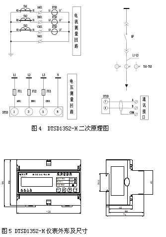 二次原理同DTSD1352-H,见图4。安装结构为DIN35mm导轨,见图6。