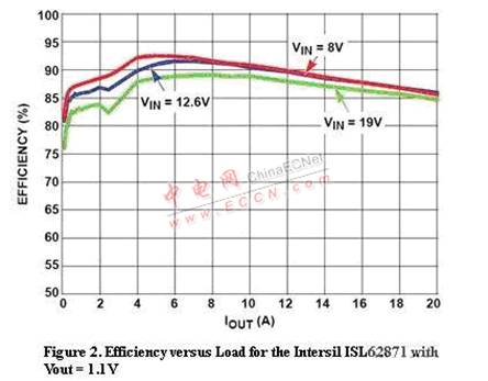 图2,Intersil ISL62871的负载与效率曲线,Vout=1.1V