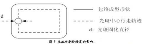 但是实际上,光斑直径是不容易控制的,它随着安装的状态不同而改变。由于AFS快速成型机无光斑测量机构,所以实际上的光斑直径大小是不可以直接测量的,需要根据制件误差大小修正补偿直径大小,使补偿直径大小等于实际光斑直径。