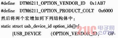 首先进入linux-2.6.14\drivers\usb\serial,打开文件option.c,在其中定义两个宏(DTM6211的VID:0x1AB7 PID:Ox6000):