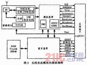 图3为无线发送模块内部原理框图。DTM6211是60针0.5mm间距的板对板连接器和一个天线连接器,与天线连接器相匹配的线缆可实现与天线MHF Plug Cable Assembly的连接。串口通信采用RS232,可以与Hi3510串口相连接,模块采用5线制接法,默认开启硬件流控。USB接口可以作为通讯口和调试口,作为USB Device设备,遵循USB2.O协议规范,最高速率支持FULL SPEED(12 Mb/s)。发送部分采用SMA(FEMALE)接口馈入天线,外接天线采用棒状天线。