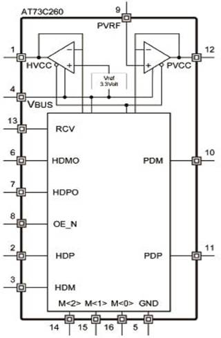 AT73C260采用面积为3 mm×3mm、栅距为0.5mm的QFN16封装。